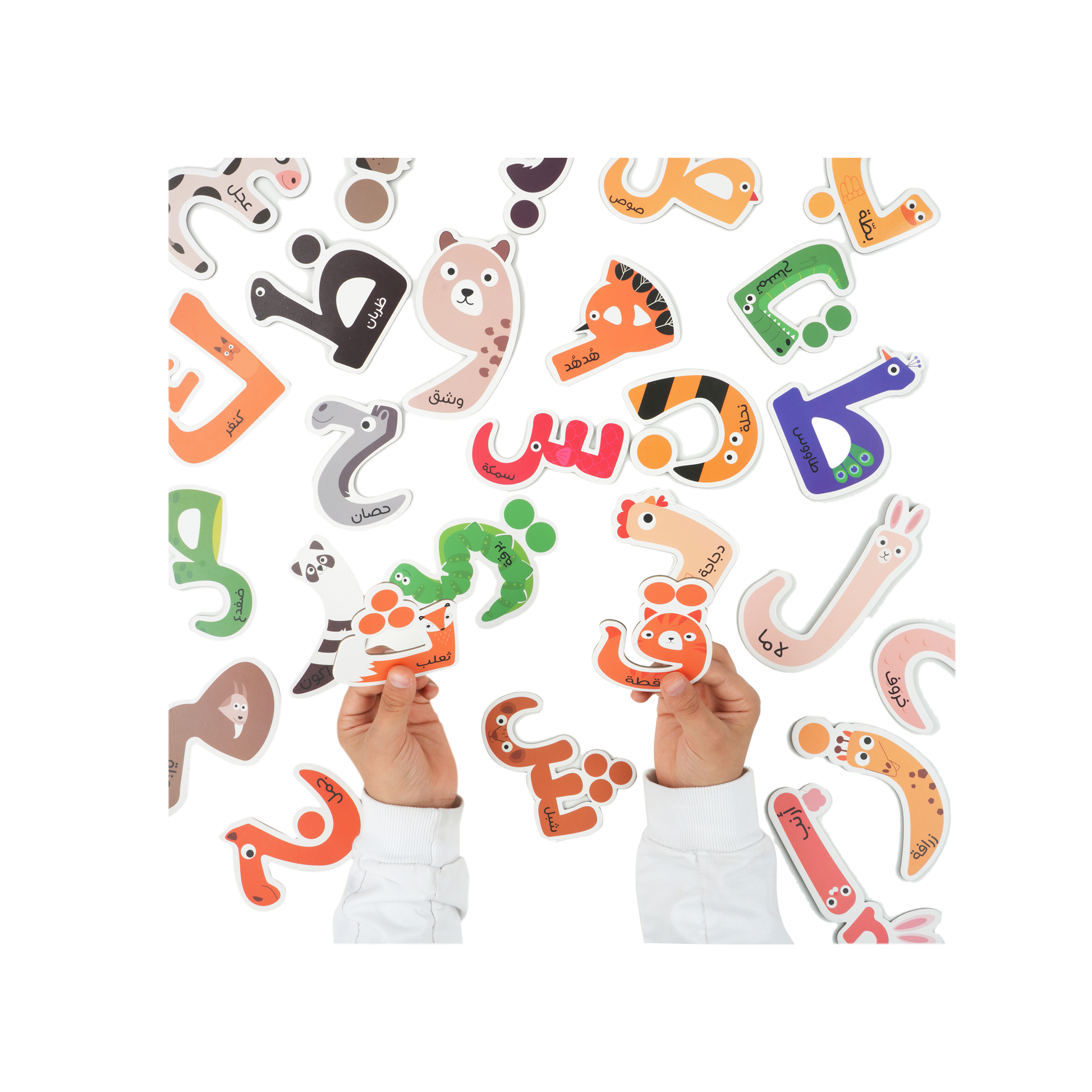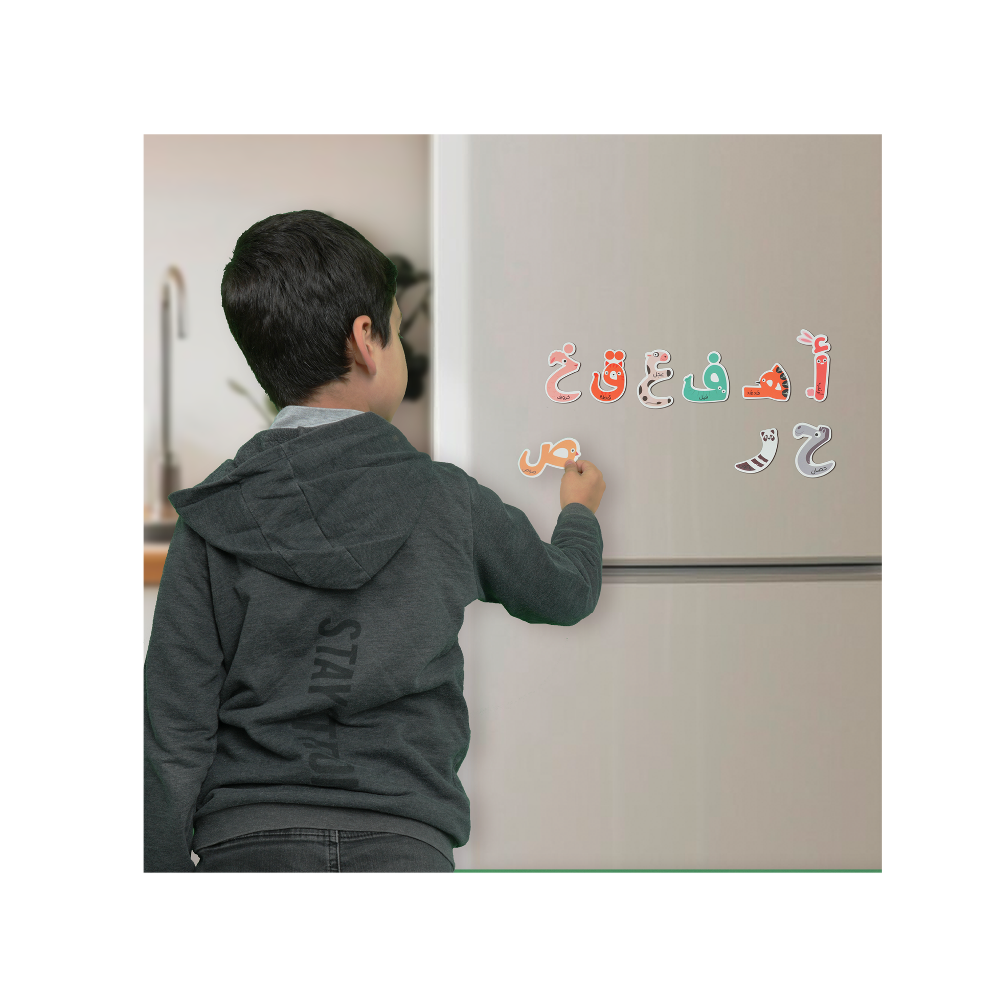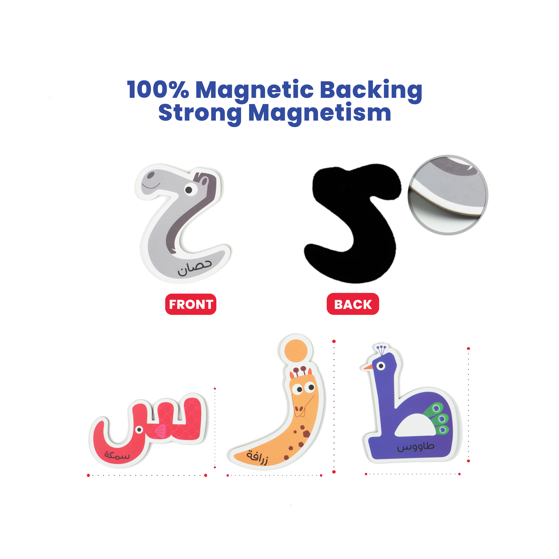 - حروف مغناطيسية عربية على شكل حيوانات، مثالية للأطفال من عمر 3 سنوات لتطوير مهاراتهم في اللغة العربية