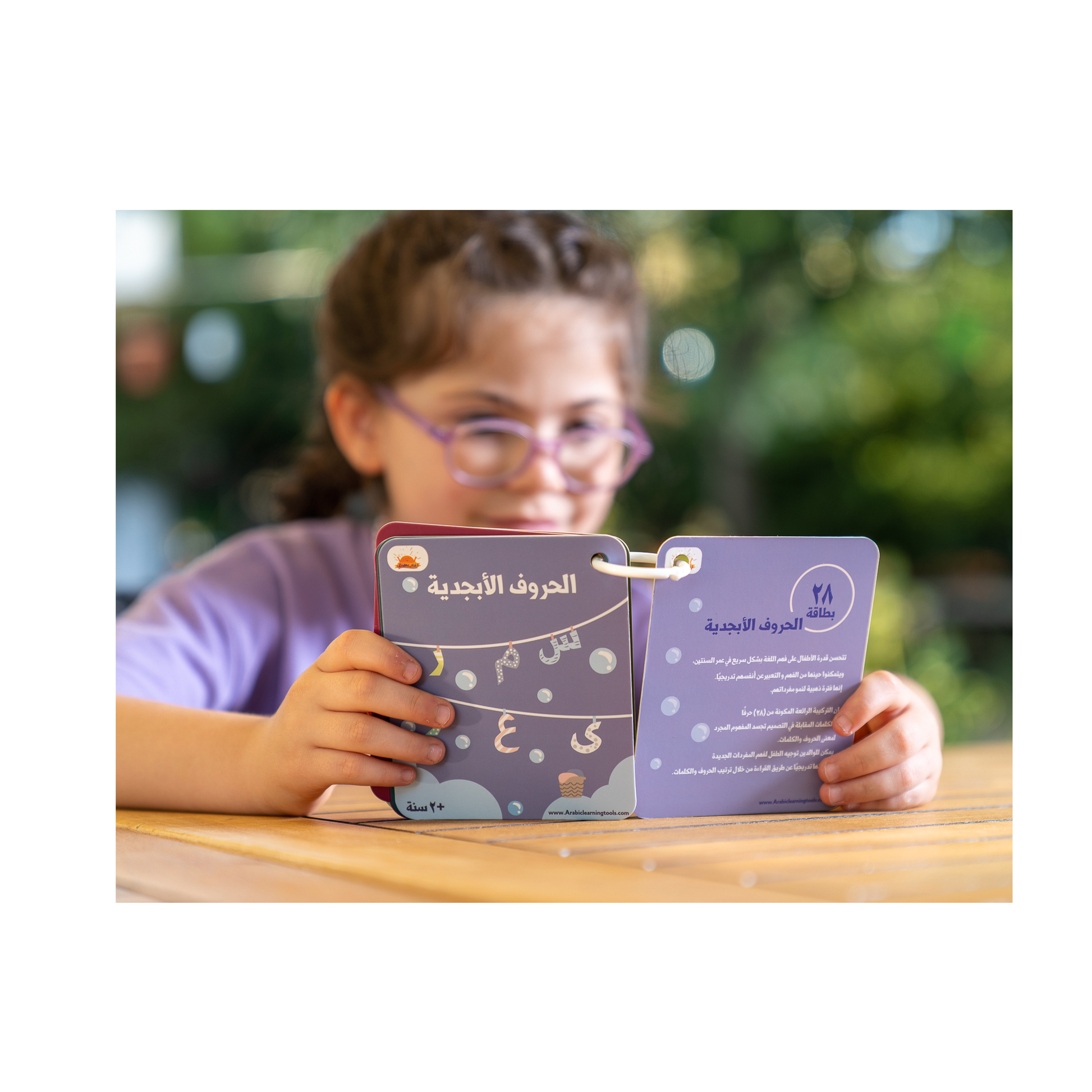 - الحروف الأبجدية: 14 بطاقة تعلم 28 حرفًا.
