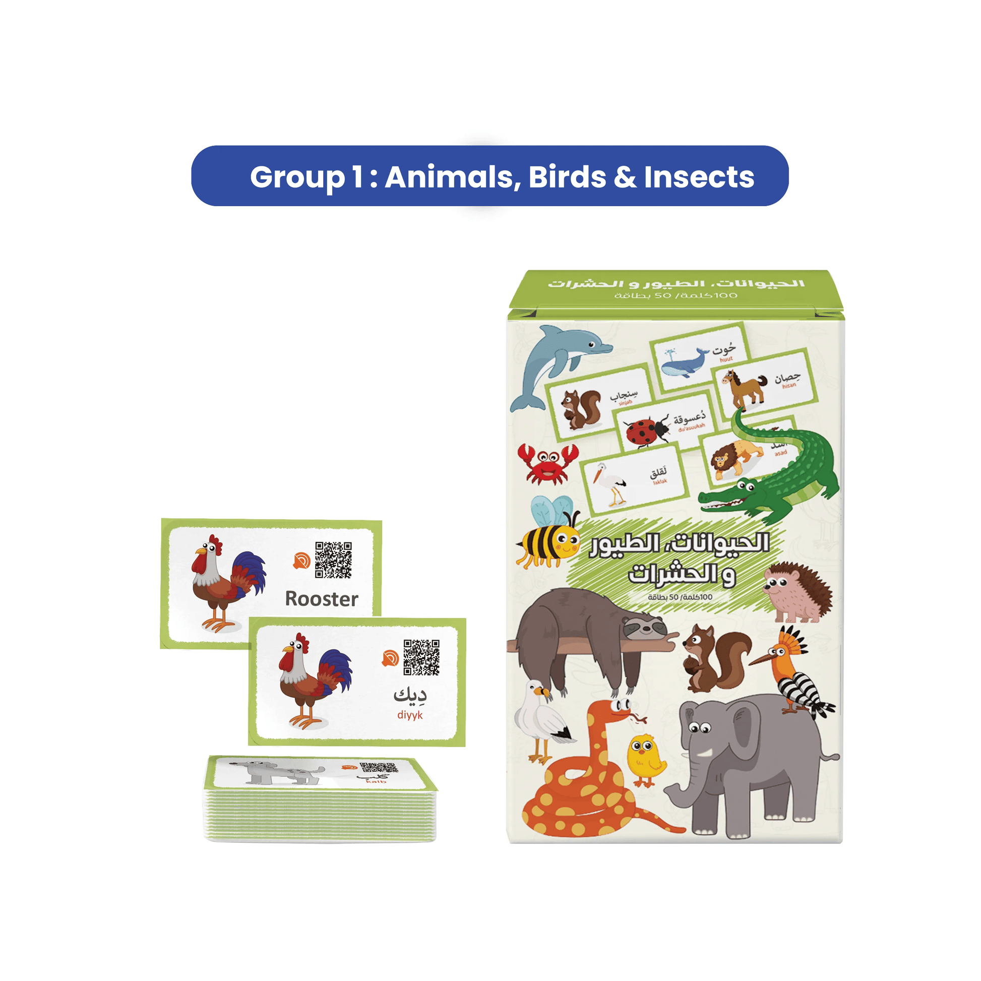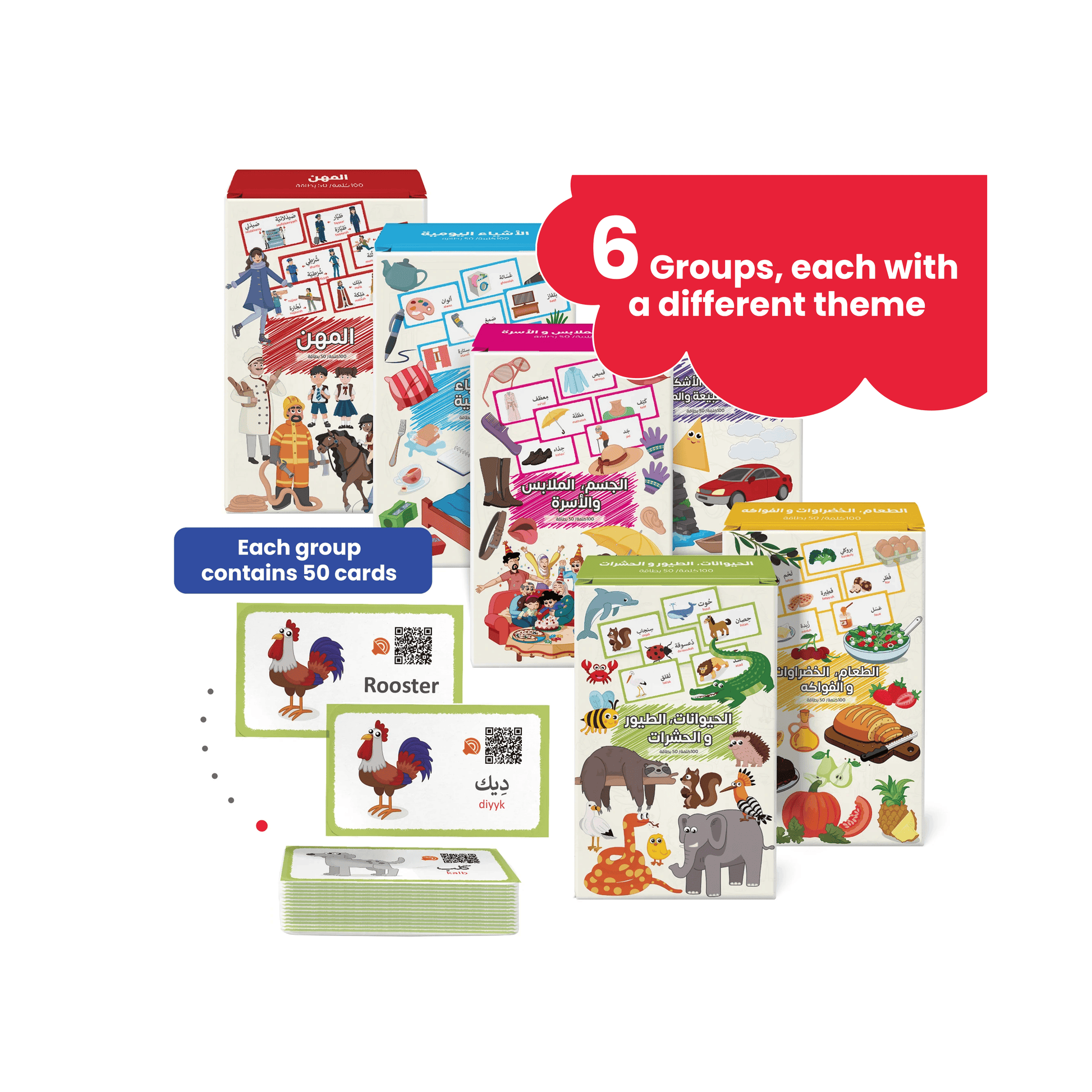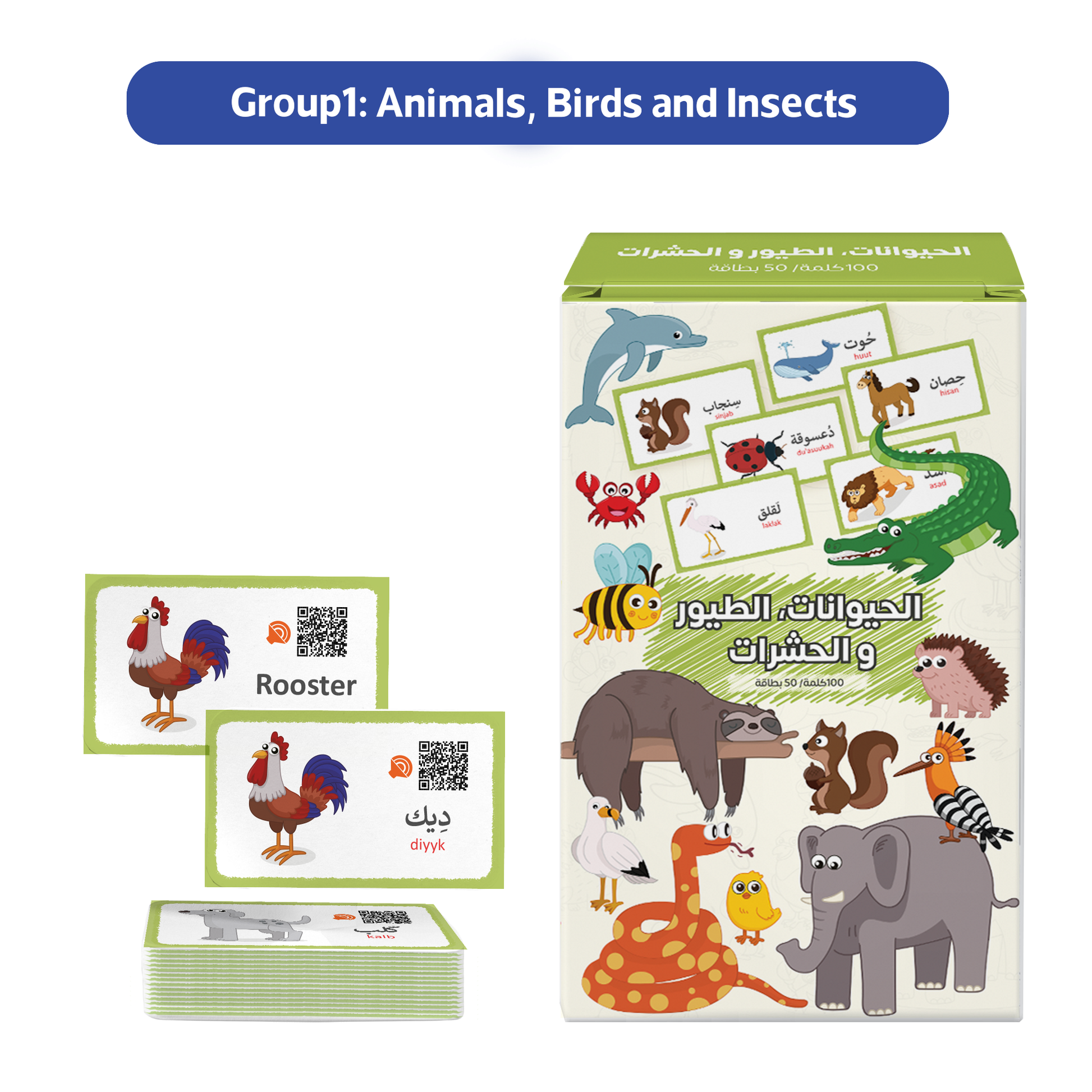 📚 6 Thematic Sets for Effective Bilingual Learning: Organized into 6 categories, these English Arabic flashcards cover Professions, Animals, Birds & Insects, Food, Fruits & Vegetables, Everyday Items, Transport, Colors, Nature, Human Body, Family, and Clothes—making vocabulary building structured and engaging.